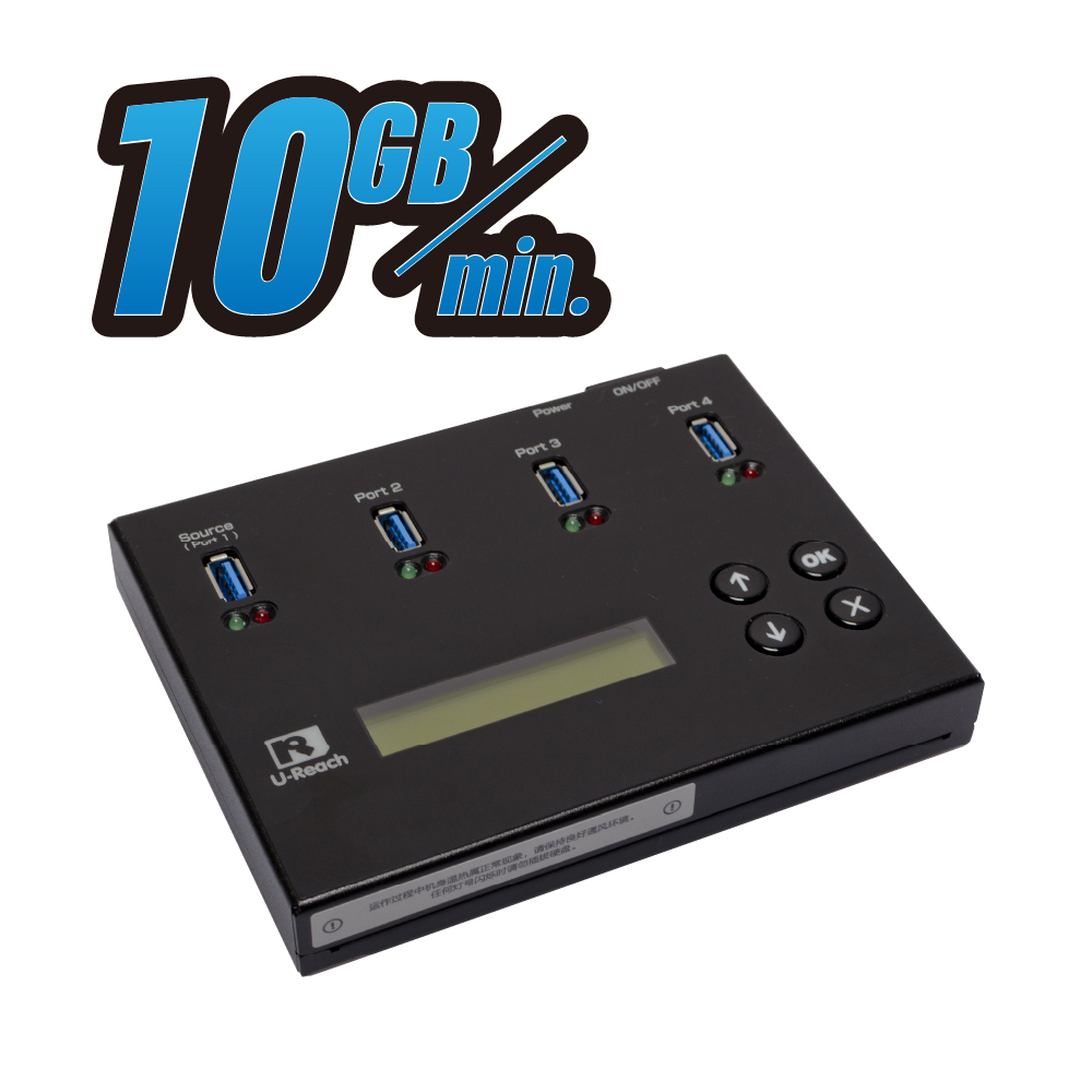 Highest speed USB Duplication /Inspection Equipment in the industry. Maximum copying speed of one single port can be up to 10GB/min.
