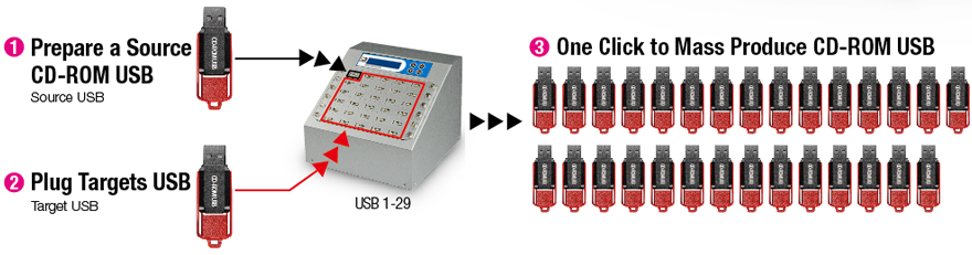 Supports 119 CD-ROM USB drive duplication simultaneously.