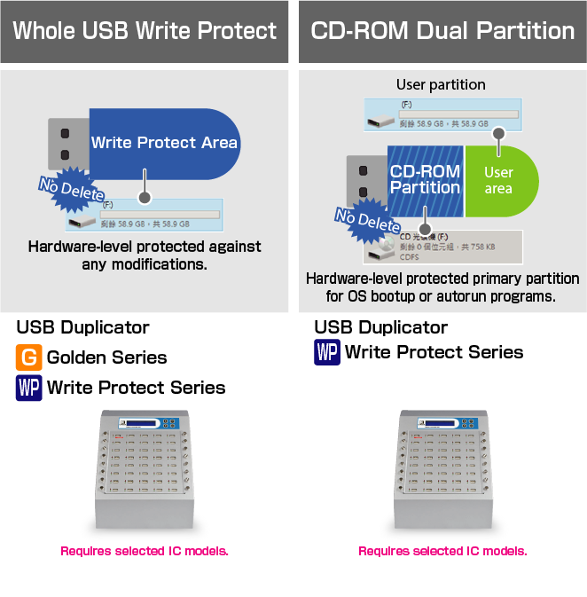 USB Write Protection | Specified USB Required. | |
