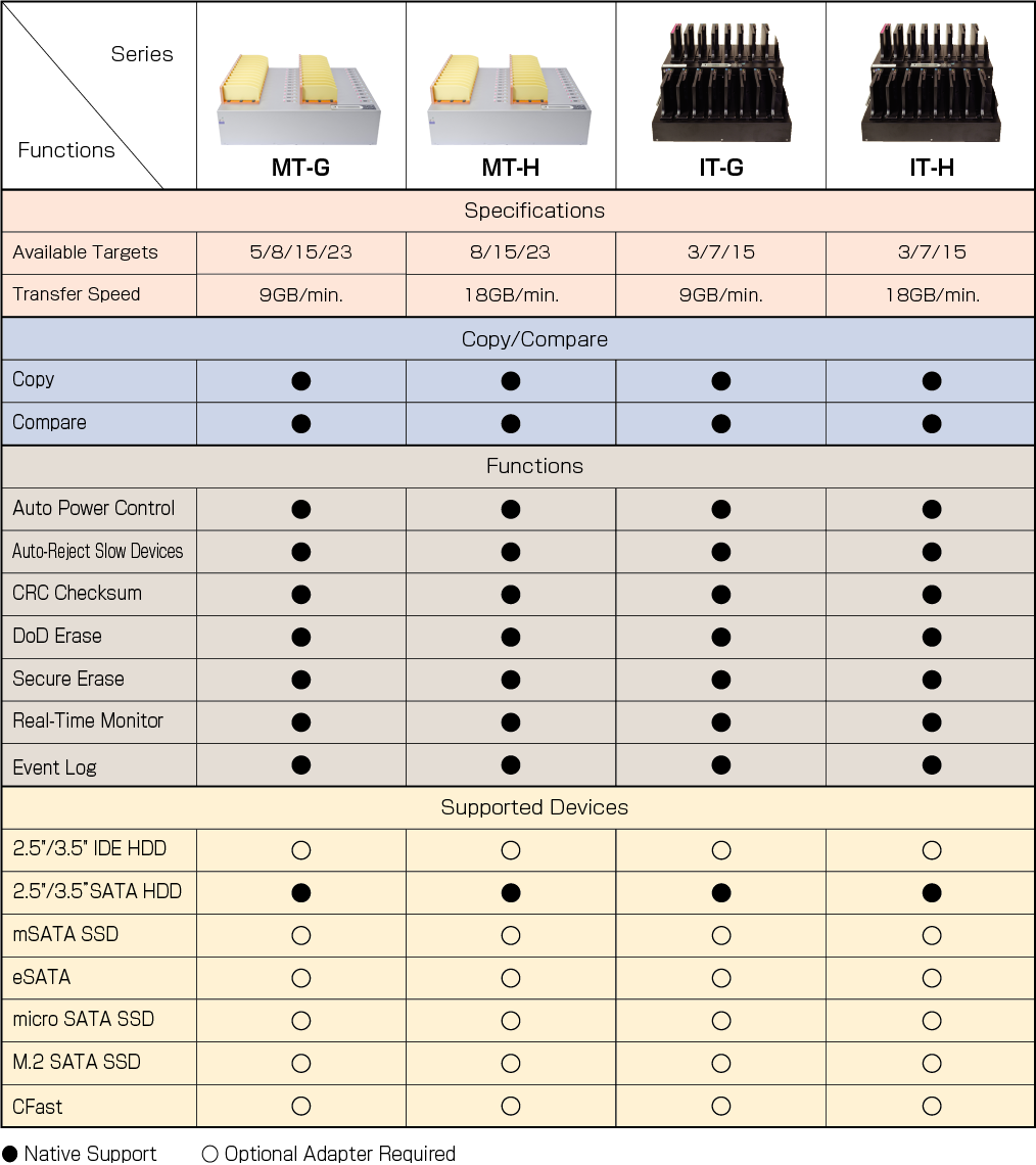 IT-H series is a professional SATA HDD/SSD duplicator, specially designed for high-volume duplication. U-Reach adopted a unique multitasking technology, it can simultaneously copy all targets with a high transfer speed of 18GB per minute.