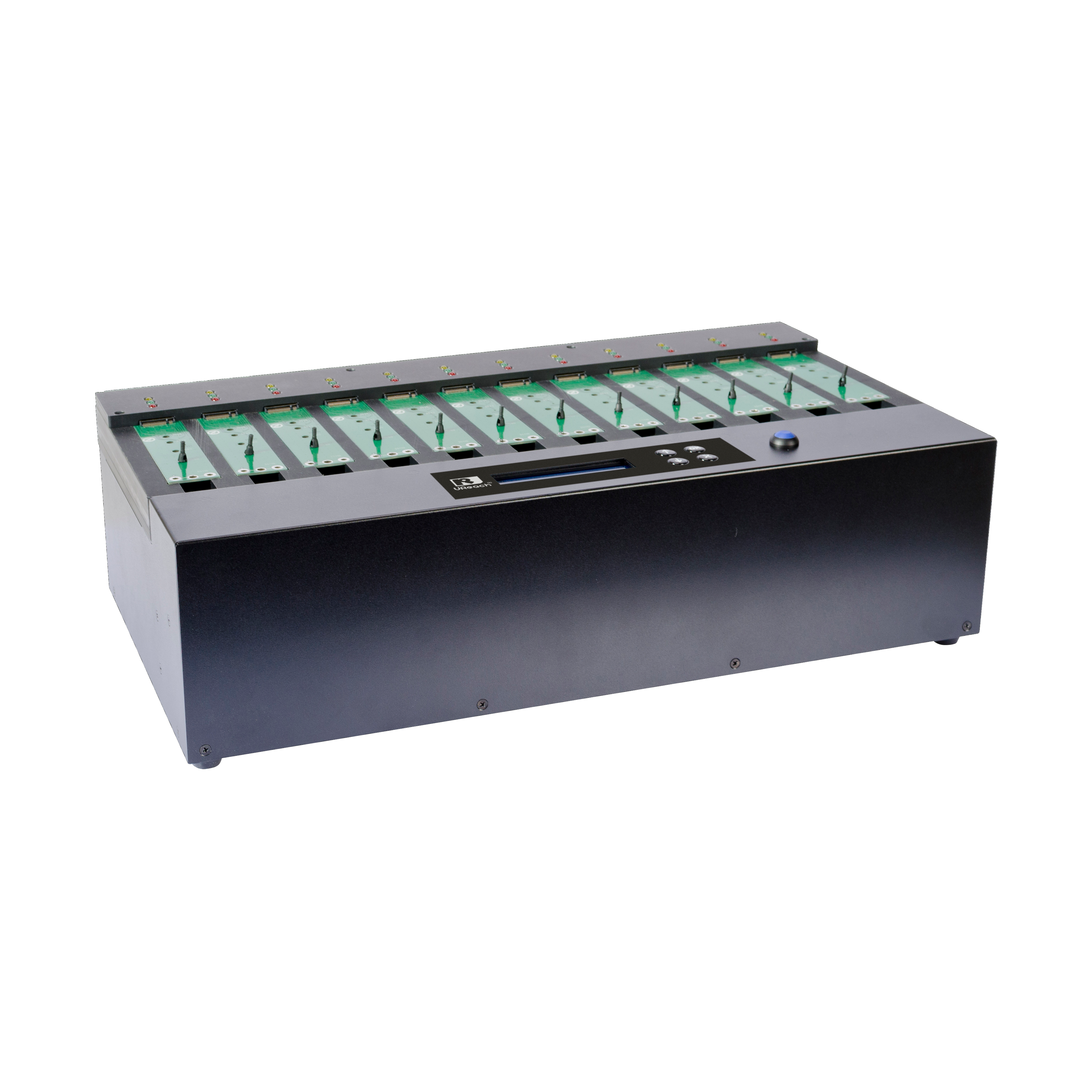 U-Reach PV Series PCIe SSD duplicator is capable of copying at 12GB/min. on all HDDs simultaneously, without any speed degradation as number of targets increase. This duplicator is great for manufacturers.