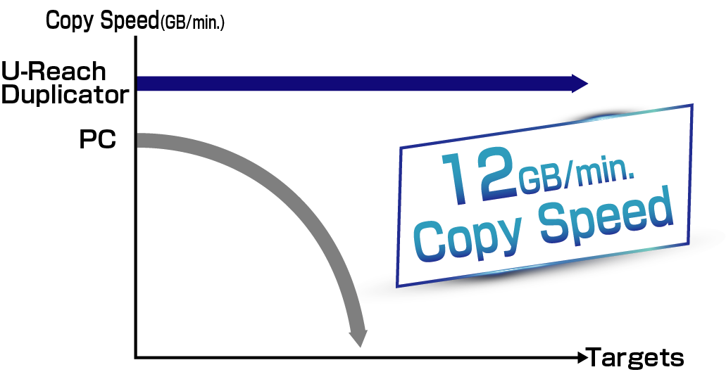 U-Reach PV Series PCIe SSD duplicator is capable of copying at 12GB/min. on all HDDs simultaneously, without any speed degradation as number of targets increase. This duplicator is great for manufacturers.
