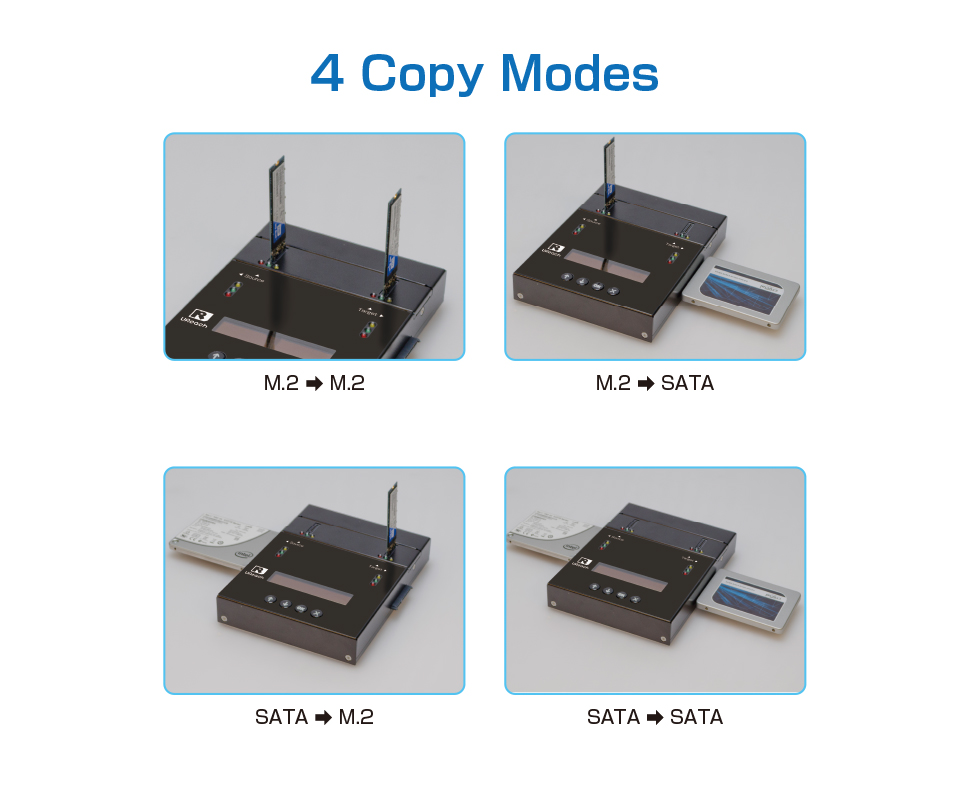 U-Reach SP Series NVMe/SATA M.2 duplicator is capable of copying at 9 GB/min. on all HDDs simultaneously, without any speed degradation as number of targets increase. This duplicator is great for manufacturers.