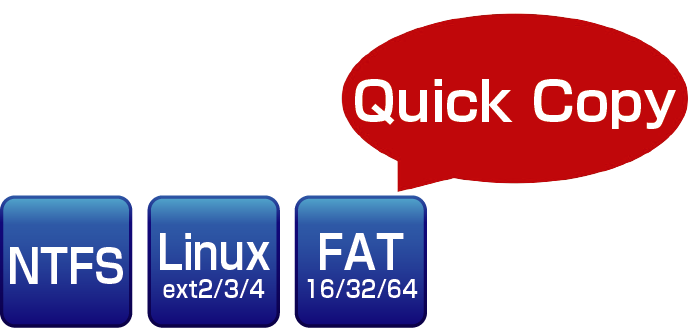 快速拷貝模式支援Windows(FAT16/32/64/NTFS)、Linux(ext2/ext3/ext4),大幅度縮短拷貝時間。