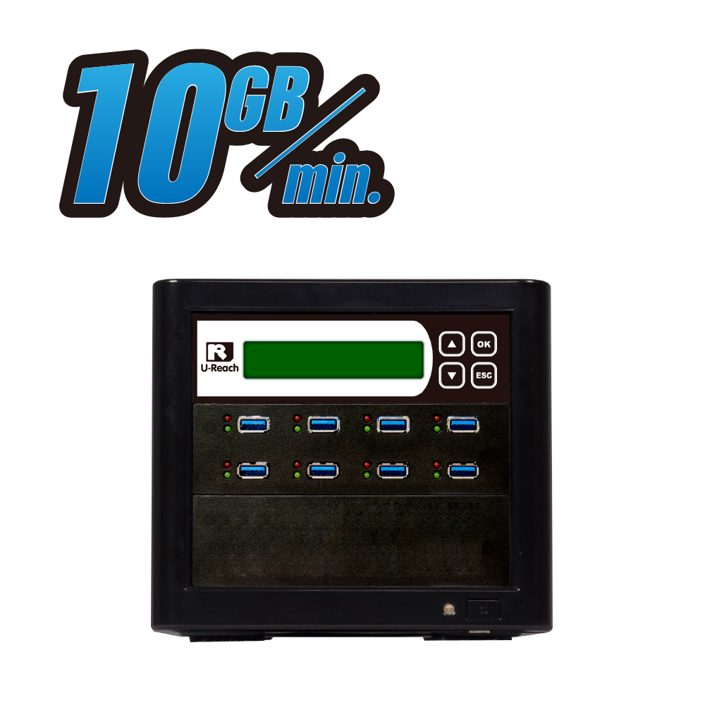 業界最高速的USB拷貝/檢測機,實測單口最快可達10GB/min.超高速傳輸。