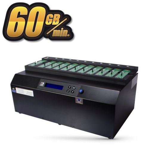 佑華科技PEH系列拷貝機,將NVMe拷貝速限提升至每分鐘60GB,除了目前業界速度最快,也是口數最大NVMe/SATA拷貝機。拷貝21GB Win10系統,30秒內即可完成。