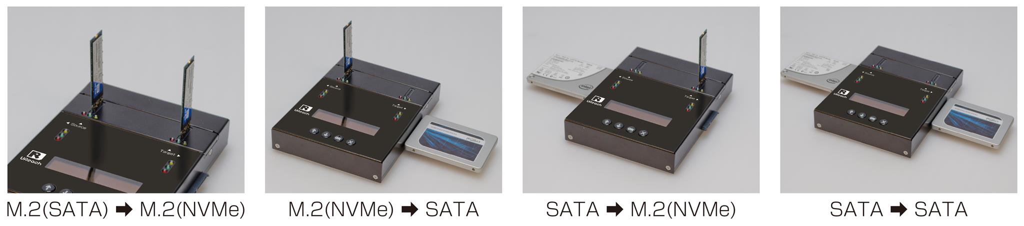 SP系列拷貝機的M.2接口,能自動偵測NVMe與SATA訊號,達到跨介面與跨訊號拷貝效能。
