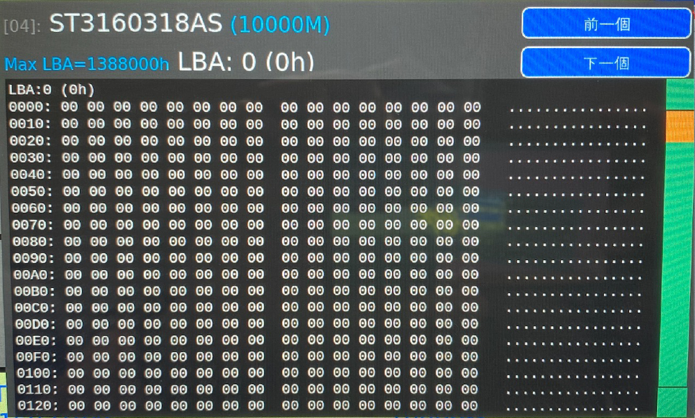 可複查硬碟是否有在GE系列抹除機上執行過資料抹除,並且查閱清除字元、硬碟訊息,螢幕會同步顯示預估檢查進度及預估剩餘時間,以便使用者的時間排程。完成之後,螢幕會提示「完成」,並告知硬碟寫入速度,以及總共花費的檢查時間。