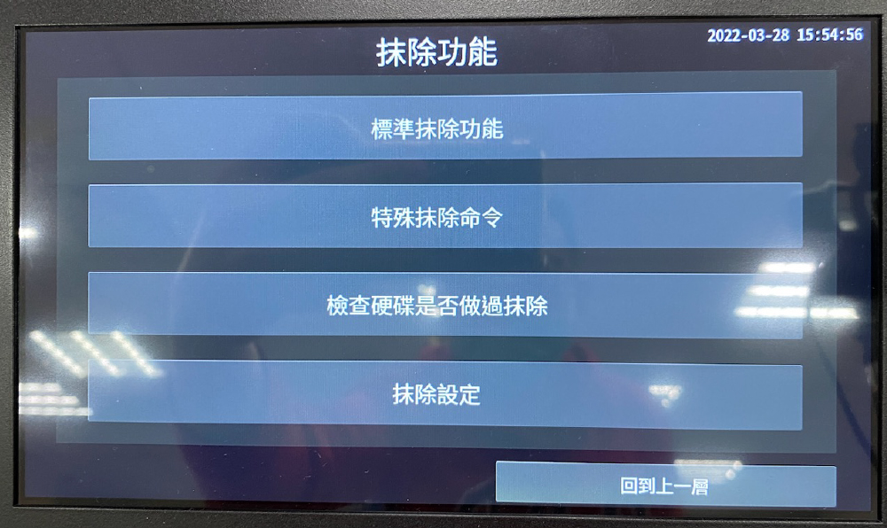 可從抹除功能清單中,選擇要顯示在標準、特殊抹除功能介面中的抹除功能,以及排序,並提供每一項抹除功能的介紹。