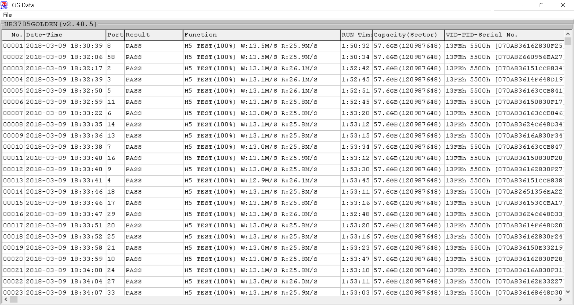 Overwrites machine-generated values to all sectors in the NAND flash, and verifies them to determine quality. Once the test passes, then devices are formatted into FAT.