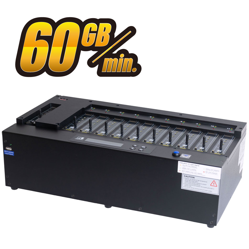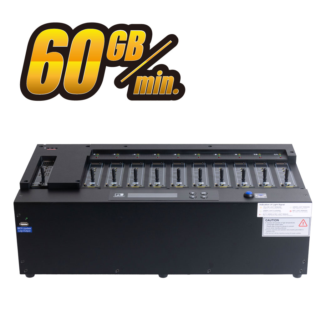 U-Reach High Speed PU series M.2/E1.S/U.2 PCIe SSD duplicator is capable of copying at 60GB/min. on all HDDs simultaneously, without any speed degradation as number of targets increase. This duplicator is great for manufacturers.